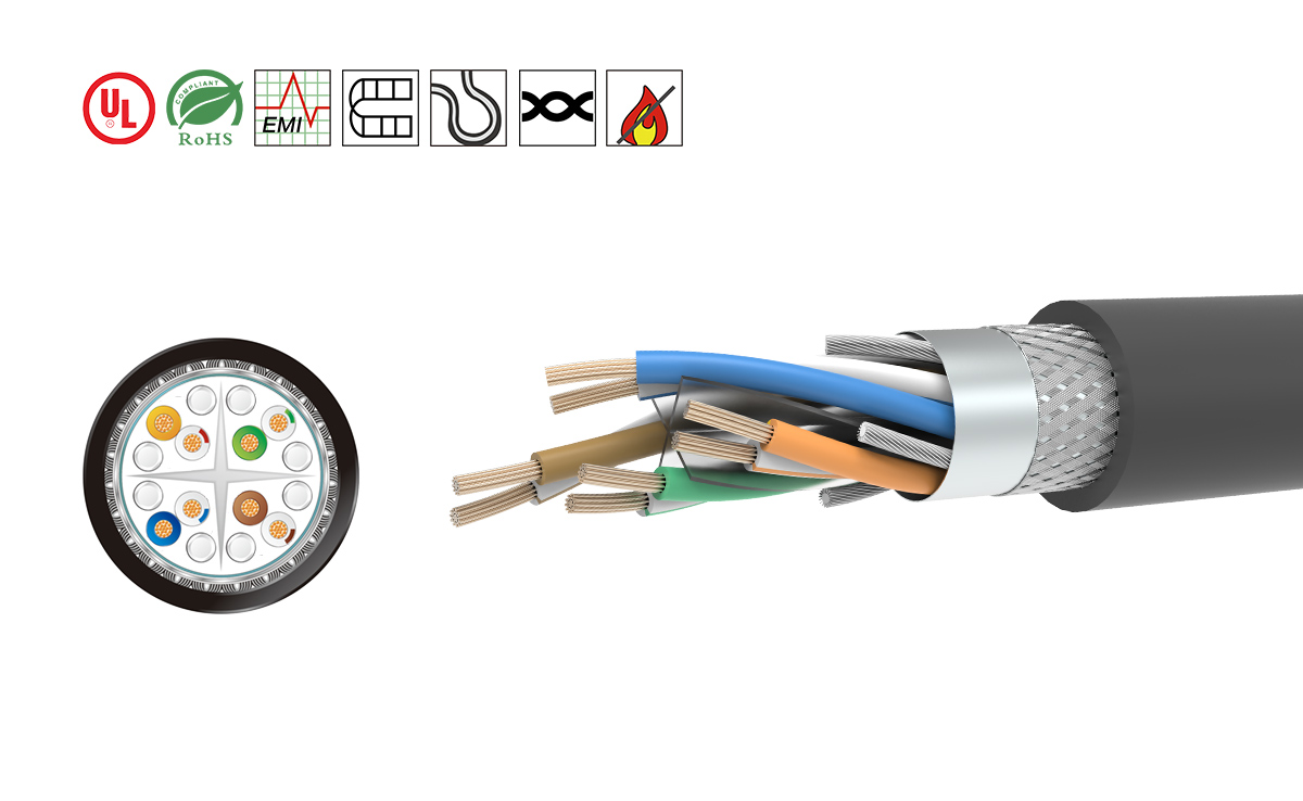 S/FTP:線對(duì)鋁箔屏蔽加鍍錫銅編織